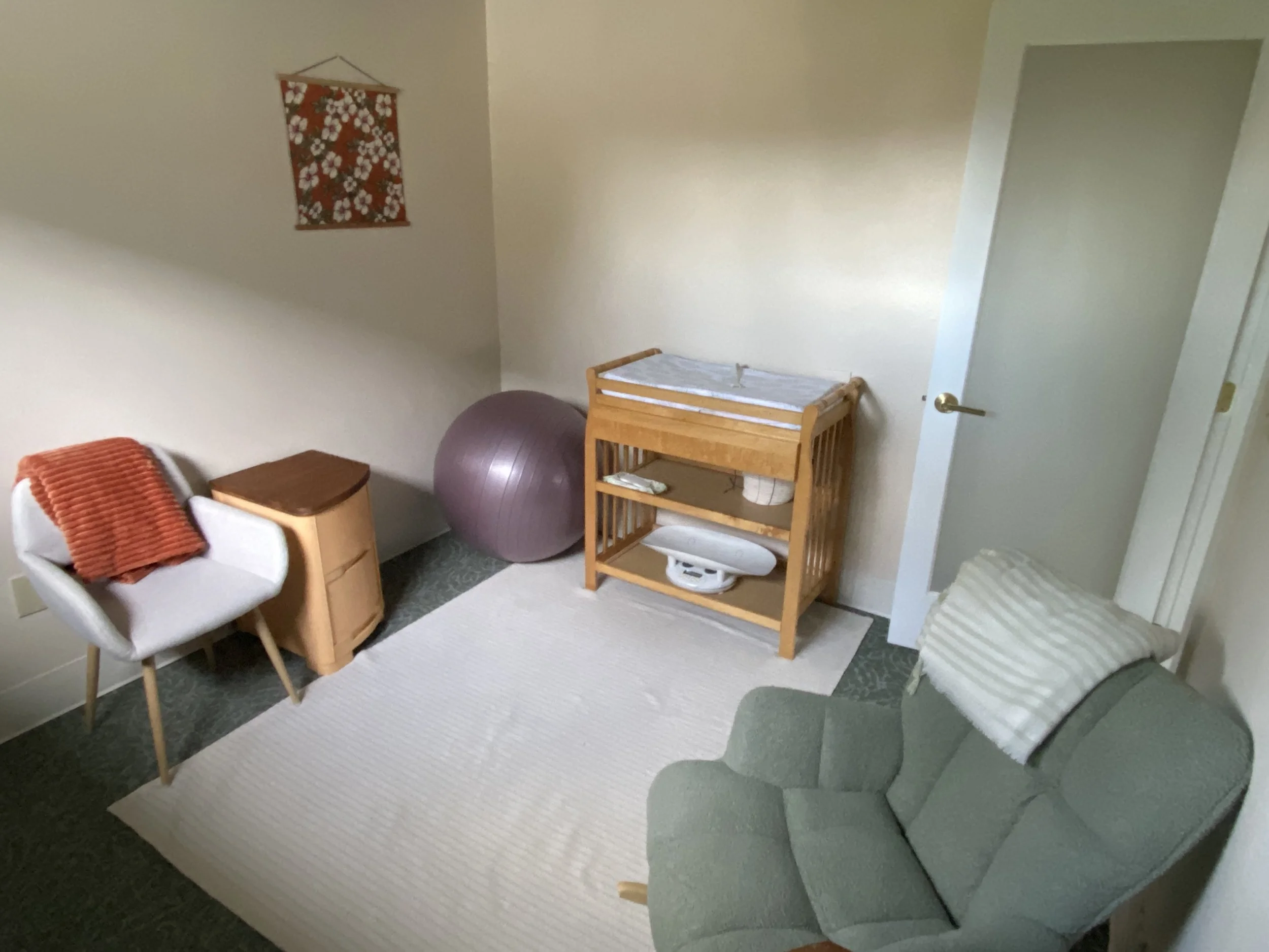 When you arrive, please leave your shoes at the door and make yourself at home. There are toys and books in the lobby and a family room behind it with rocking chair, changing table and birth ball. Make some tea, or grab some electrolytes from the kitchenette while you wait for your appointment!